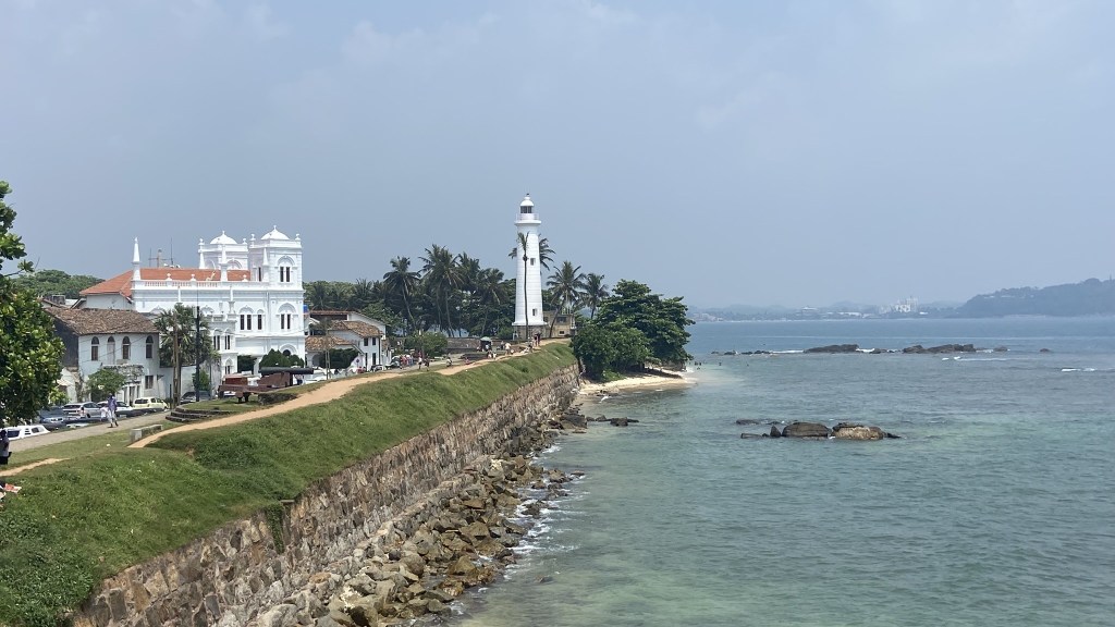 Galle Fort is a fascinating and picturesque example of colonialism mixed with a huge dose of Sri Kansan culture. During the day we ambled through the cacophony of shops and cafes in the mid afternoon heat. With sunset, came an ease from the heat, as the town now illuminated, discharged those that had hidden for an afternoon siesta. It was a wonderful way to spend a day, exploring the many shops selling upmarket art, gems and clothing and ambling along the many walls and battlements.