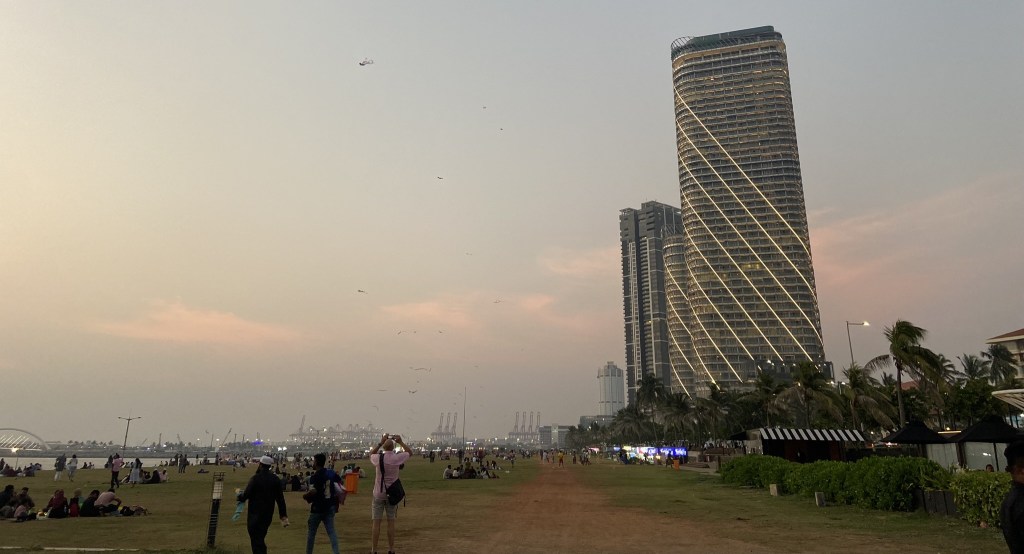 We were fortunate to arrive on Poya day (bank holiday). Galle Face Green was in full festival mode. Families of every religion had set up picnics and games of cricket. Hawkers sold street food and children’s toys, random drummers played. Most spectacular was the kite fliers. Everywhere, every family flew a kite – paper thin, simple and spectacular. We spent a glorious hour flying one we purchased cheaply from one of the numerous kite stalls. A Muslim family offered us some food. We then went to the famous Galle Face Hotel for some supper. It is a beautiful, colonial hotel at the top of the green. Don’t be put off by its exquisite exterior, it has numerous restaurants, catering to different budgets and tastes and was a joy. Just remember, that on Poya days, no alcohol is allowed to be sold anywhere in Sri Lanka, irrespective of hotel class…so we enjoyed soft drinks and coffee.