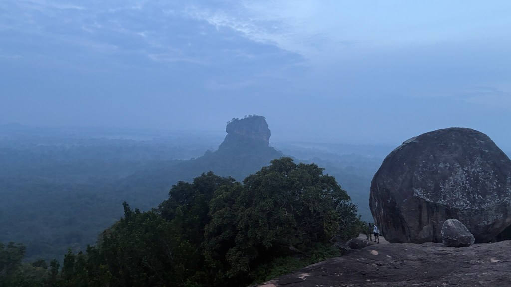 This was a ‘tour’ sold to us by the hotel, but it was so worth it. We left very early – 4.30am in the morning and travelled with our wonderful guide Samas, in the dark, to purchase a very cheap entrance ticket. Many backpackers choose this one over Sigiriya as it is pennies in comparison. So, we did feel like we were on a school trip, scrambling up the mountain in the dark, surrounded by very young, very eager backpackers. Reassuringly, they seemed to have to rest as much as us! The climb is very steep and near the top, there are sections that are quite tricky to climb, which means that little queues form. Though it is pitch dark, it is well lit and we didn’t need the head torches we had brought. Sat at the top – in calm silence – we all waited for the sun to come up behind Sigiriya. Sadly, it was too cloudy for a clear sunrise, but it was resplendent all the same. It is a wonderful thing to watch Sigiriya and then if you have the stamina…go up that rock too,