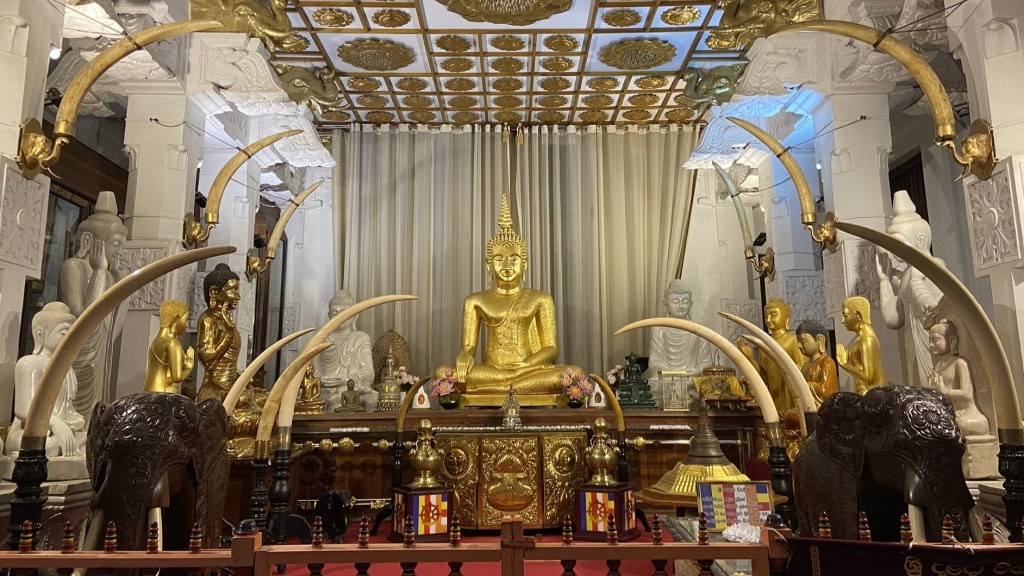 The Temple of the Sacred Tooth is beautiful and well worth a visit. It is a place of pilgrimage. Buddhists and tourists alike, visit in their thousands to get a glimpse of Buddha’s tooth held securely in its gold casket. If you get there around 5.30pm you can stay and participate in the nightly ceremony. Firstly, drumming before the doors of the room holding the casket are opened. We queued to view the gold casket…which was organised efficiently and the ‘walk by’ was super fast, devotees and us, contributing cash to a collection tray. Once a year, a special ceremony takes the casket on an elephant procession through the town with all the pomp and pageantry you would expect.